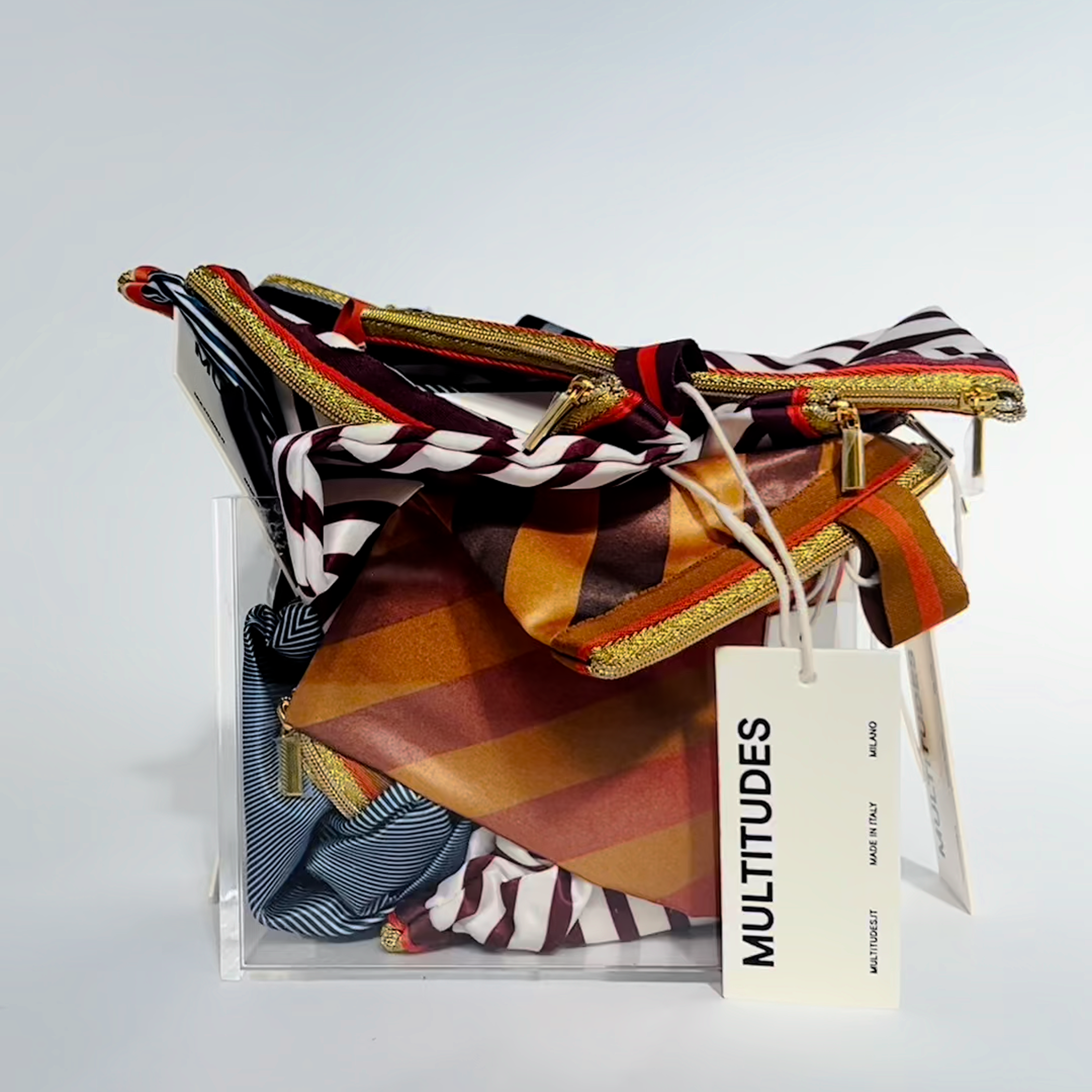 Ogni collezione esplora una nuova relazione tra colore e spazio, trasformando materiali e forme in oggetti che raccontano atmosfere, luoghi, emozioni. Le nostre pleated bags riflettono un immaginario vibrante, fatto di contrasti, geometrie e spontaneità, sostenuto da un’artigianalità rigorosamente italiana.